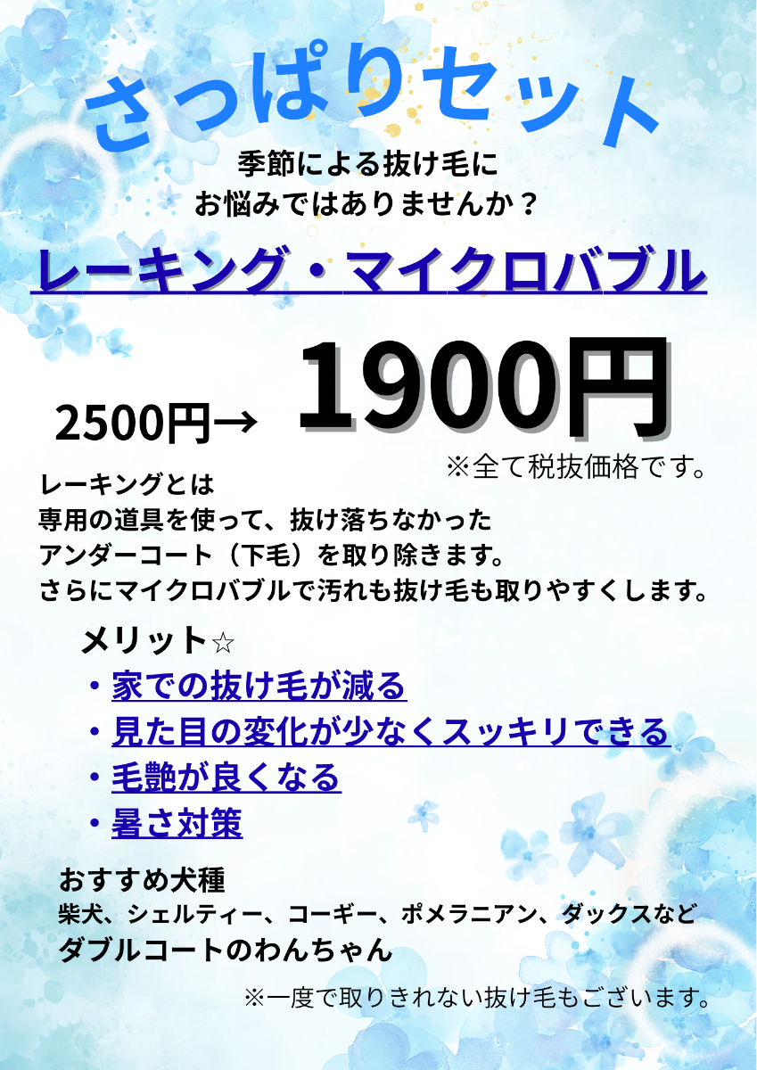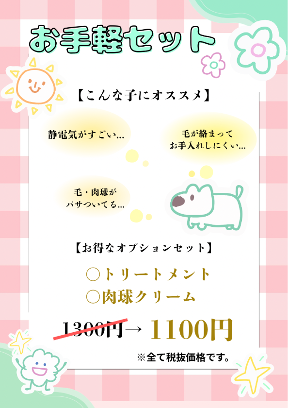 虫よけ効果、紫外線ダメージを受けた被毛を保湿、毛玉予防、暑さによる蒸れ対策などのトータルケアをします。